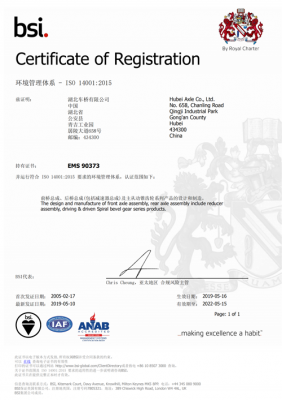 • 湖北車(chē)橋有限公司排污許可證申報(bào)已...